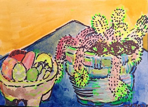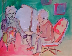 Tijdens corona ontstond de gewoonte bijna dagelijks een ‘kaart’ te maken met potlood, aquarelverf, acryl, en stift.